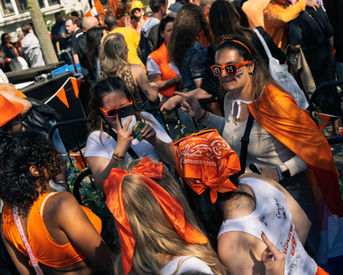 The lively energy and colorful celebrations of King's Day in Amsterdam.